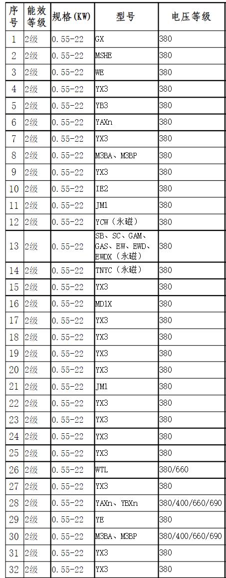 以上是節(jié)能電機國家標準型號大全圖,可以讓大家清楚的看到節(jié)能電機的型號和規(guī)格,國家對節(jié)能電機要求與國際標準不同,我國電機能效等級劃為三個等級,而國際標準中是分為四個等級的,不同等級的節(jié)能電機型號和能效標準也是不一樣的。