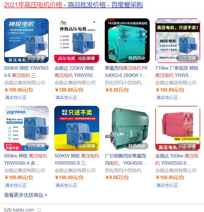 (百度愛采購搜索得出2021年高壓電機(jī)價(jià)格)