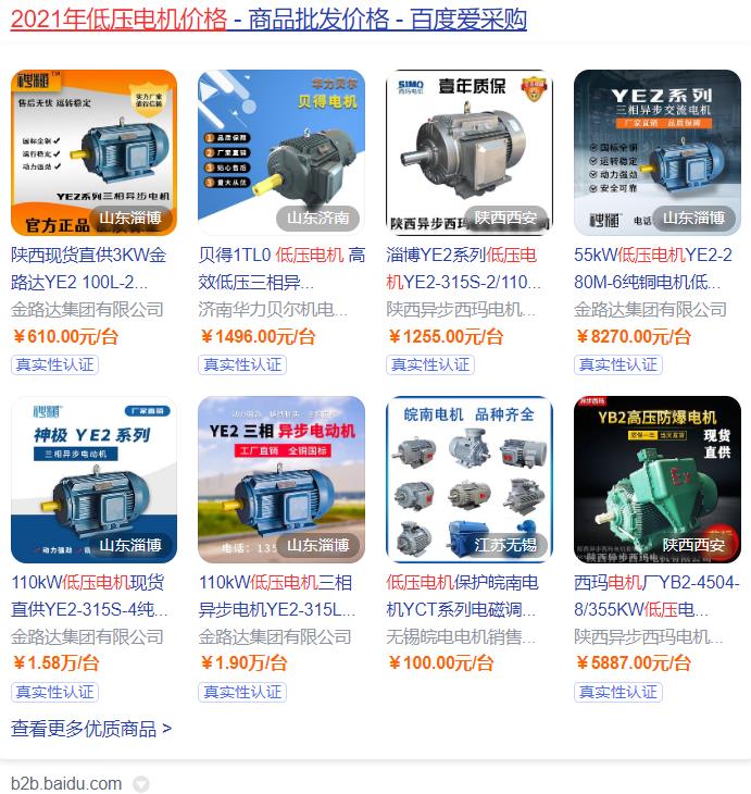 (百度愛采購搜索得出2021年低壓電機(jī)價(jià)格)