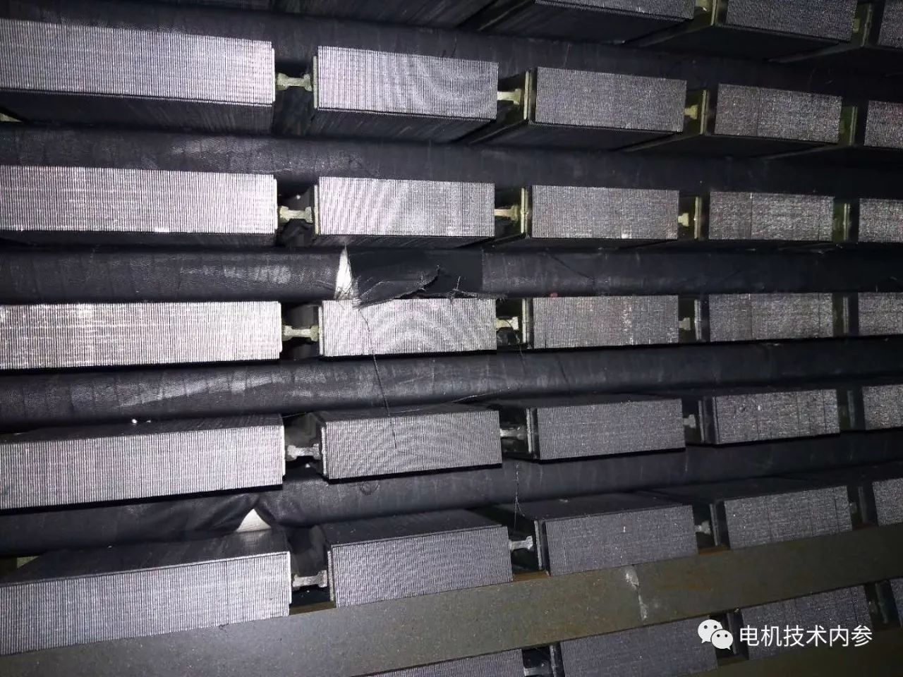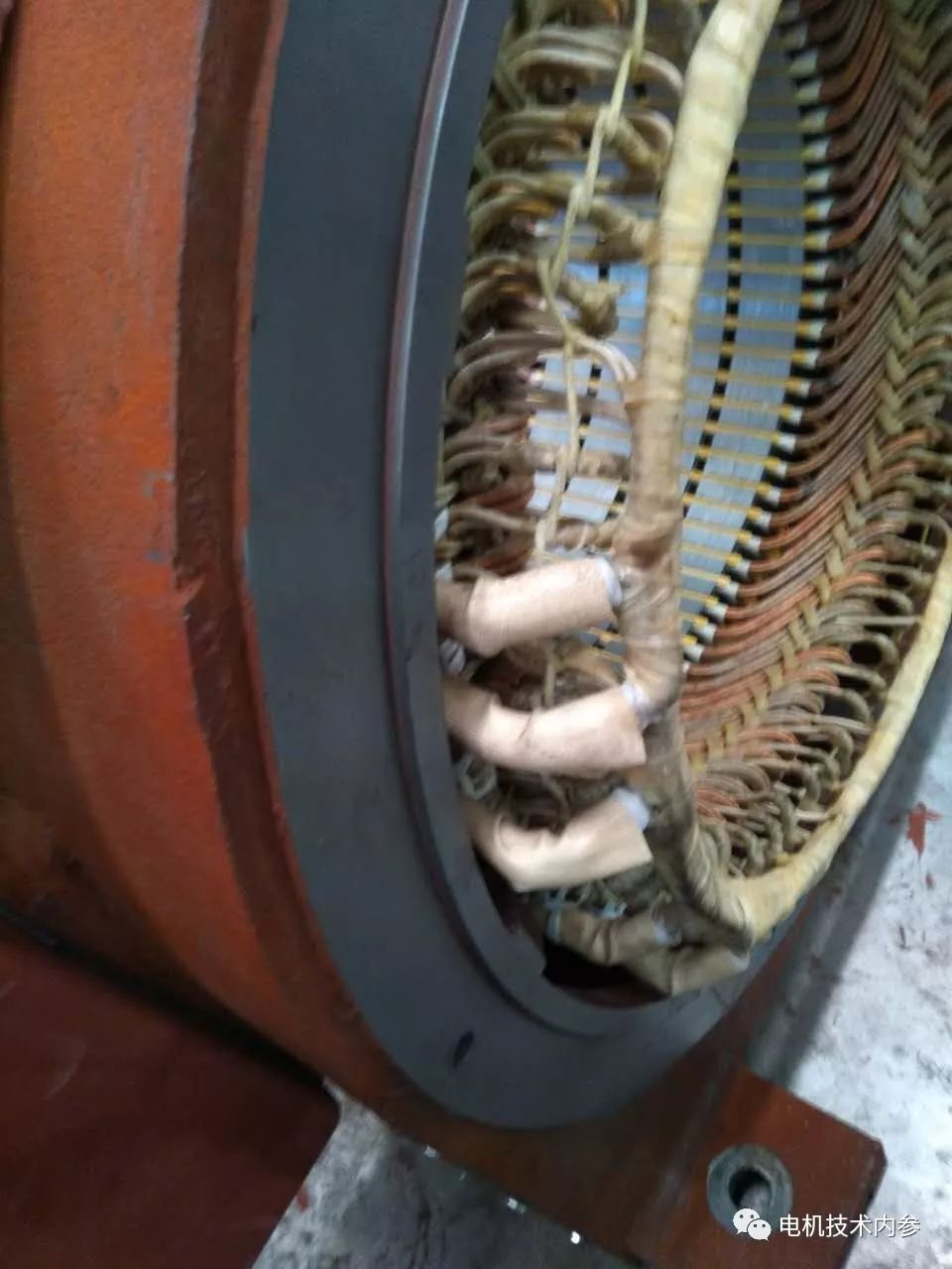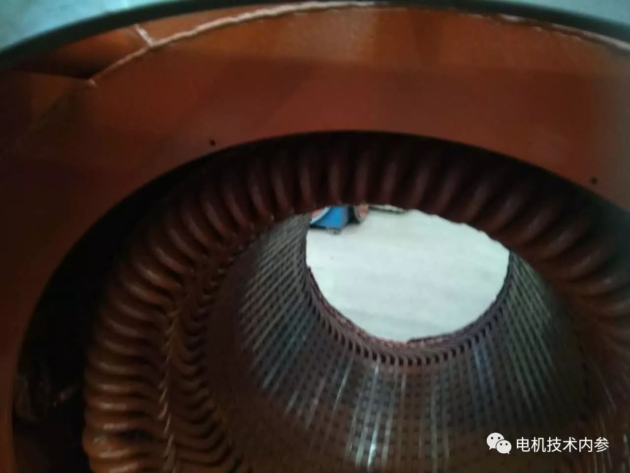 槽松動(dòng)或脫落可能劃傷絕緣,造成定子鐵芯多點(diǎn)短路和繞組接地故障。當(dāng)槽楔的厚薄比比較大時(shí),槽楔的松動(dòng)會(huì)使槽楔在槽內(nèi)傾斜滾出槽外,造成與定子(繞組電機(jī)轉(zhuǎn)子的槽楔出槽)或轉(zhuǎn)子(定子的槽楔出槽)的摩擦;更有甚者,槽楔整體彈出,導(dǎo)致電機(jī)孔掃。嚴(yán)重時(shí),繞組局部發(fā)熱燒傷絕緣,對(duì)地短路,后爆破倒塌繞組。