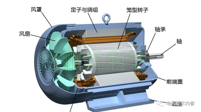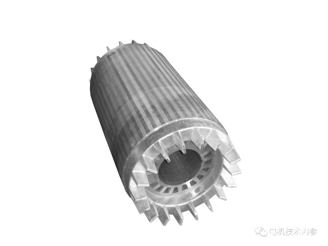 這里的風(fēng)扇就是和轉(zhuǎn)子鑄鋁繞組(鼠籠)鑄成一體的在短路環(huán)(端環(huán))四周均布的鋁風(fēng)葉,空氣對(duì)稱地從兩端進(jìn)入電機(jī),依次吹拂定子兩邊的端接部分、定子鐵心兩端面和定子疊片的外表面。