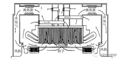 (4)電機冷卻介質與其他冷卻設備的循環(huán)是由電機外部的特殊裝置產生的,如水冷器、空冷器和離心渦流風機等。